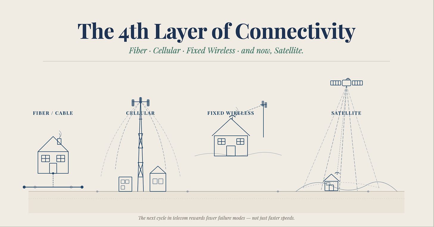 The next cycle in telecom will reward whoever can sell fewer failure modes — not just faster speeds. The orbital overlay is becoming the new expectation layer, and investors should underwrite it accordingly.